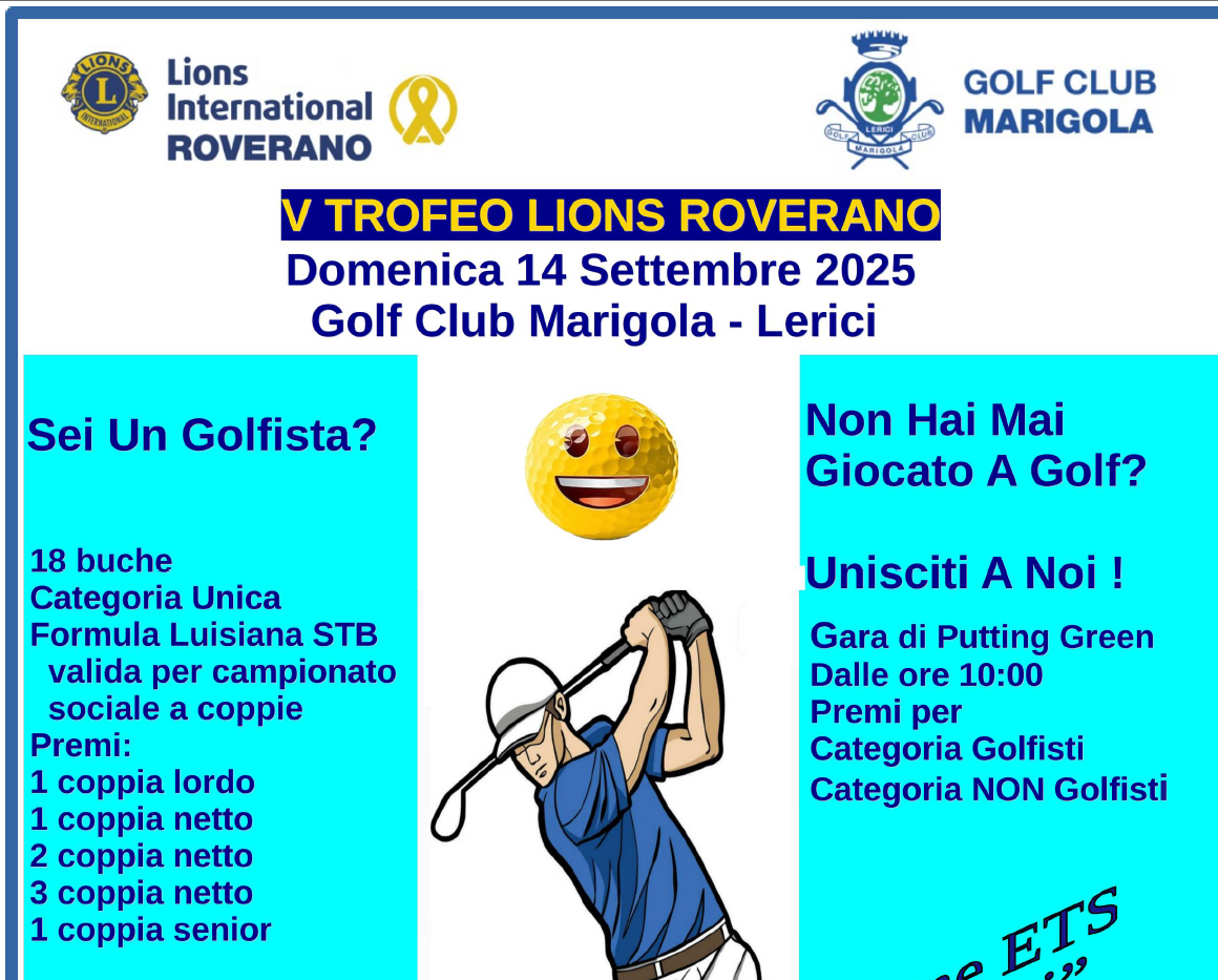 Il Lions Club Roverano – Distretto 108 Ia2, domenica 14 settembre 2025 dalle ore 9:00, ospitato dal GOLF CLUB MARIGOLA, organizza il […]