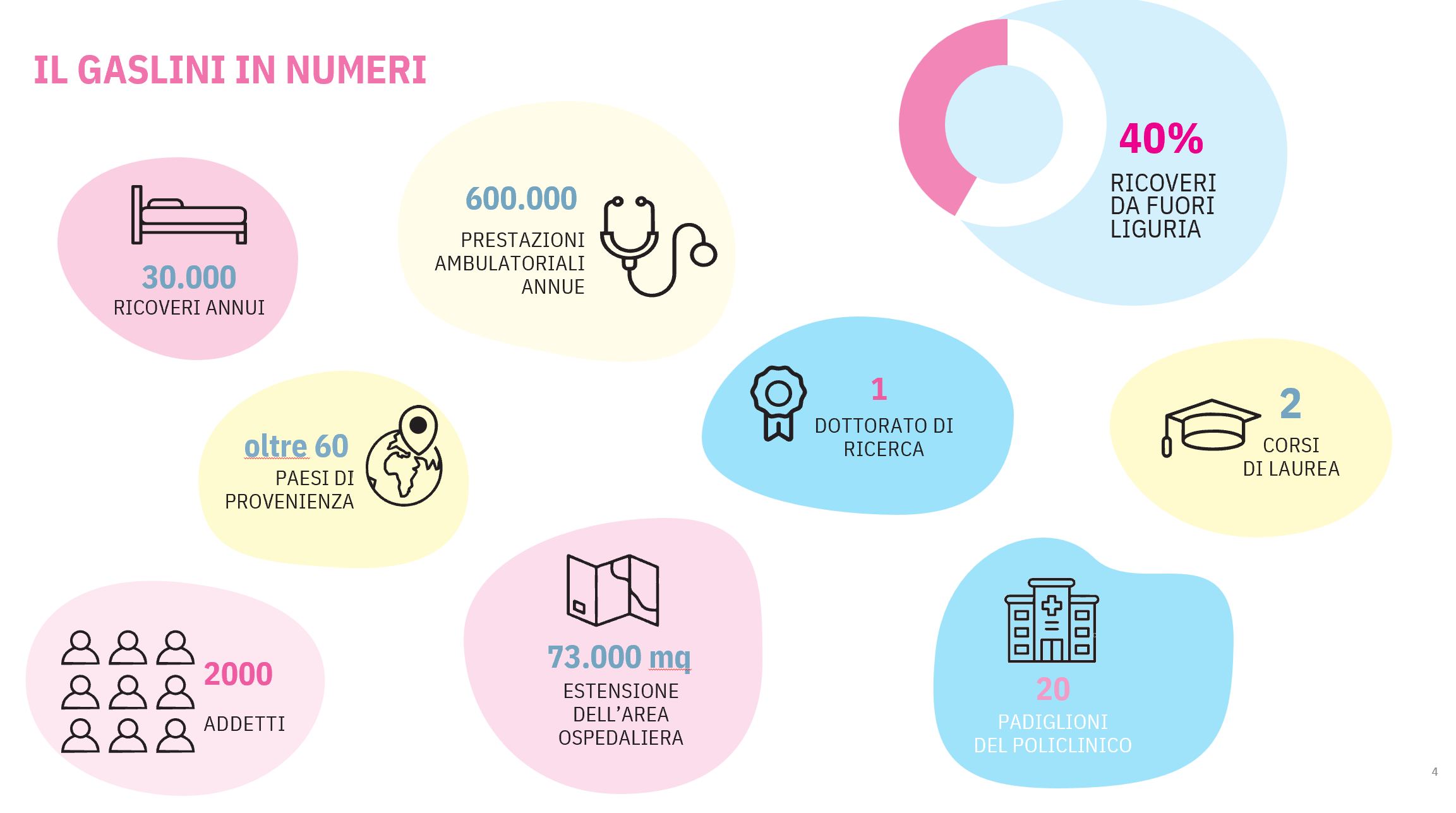 L’Istituto Giannina Gaslini è un Istituto di Ricovero e Cura a Carattere Scientifico, un policlinico pediatrico tra i più grandi ed importanti d’Europa, uno dei pochi ospedali italiani interamente dedicati alla cura dei bambini, dove la ricerca in ambito pediatrico svolge un ruolo cruciale nel chiarire le cause e nel migliorare la terapia e la prognosi delle malattie rare e gravi.