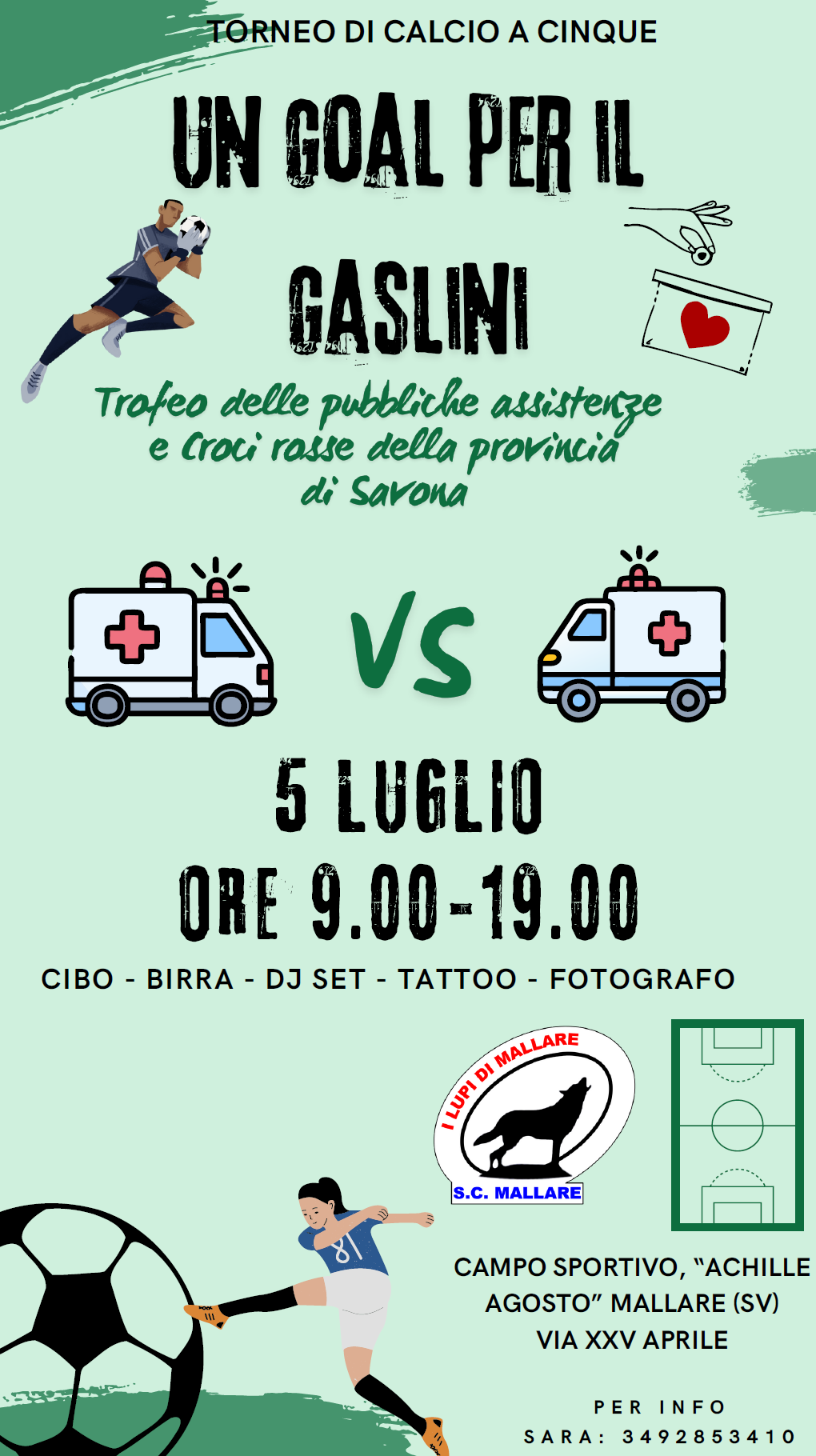 Da un’idea di Sara Bellunghi, milite della Croce Bianca di Cairo, nasce un evento all’insegna dello sport e della solidarietà: sabato 5 luglio, presso il campo sportivo di Mallare, si terrà il “Trofeo delle Pubbliche Assistenze e Croci Rosse della provincia di Savona”, un torneo di calcio a cinque organizzato a sostegno di Gaslininsieme ETS, in favore del reparto di oculistica dell’Ospedale Pediatrico Giannina Gaslini di Genova.